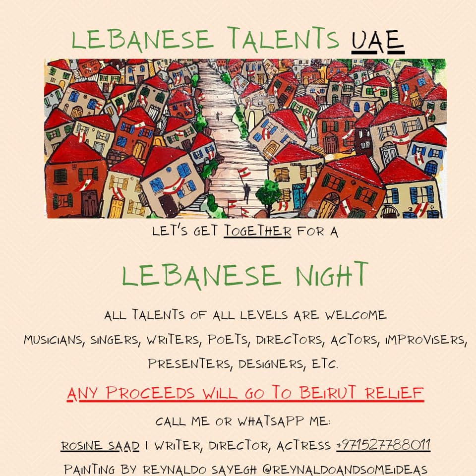 Rosine is currently working with Lebanese artists based in the UAE to raise funds for the Theater Relief Group. However, due to COVID-19 restrictions, the live performance originally announced was postponed and in its place, the group will be auctioning paintings by Lebanese painters based in the UAE, which will be announced soon.