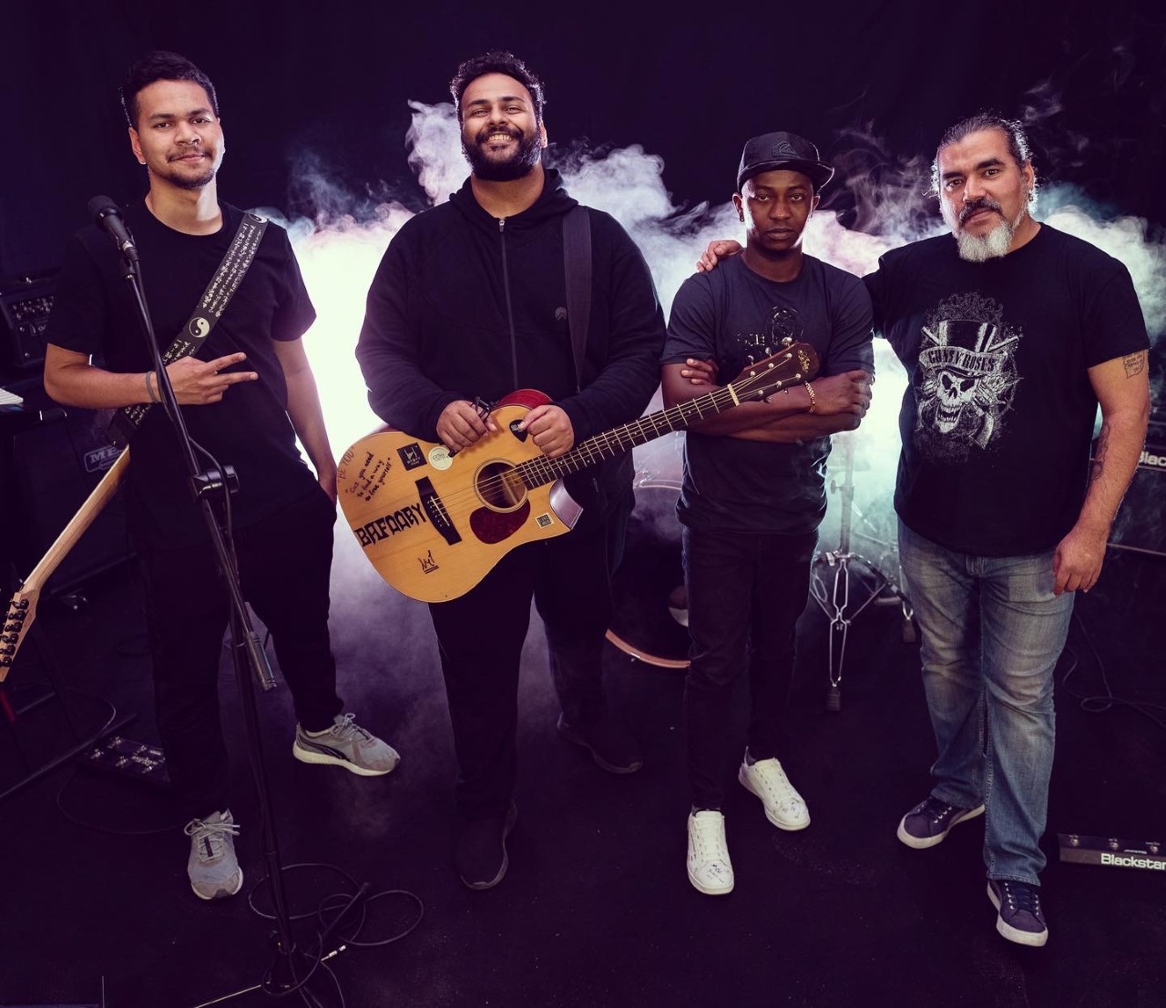 We all met through multiple open mics throughout the UAE and we started jamming. I don’t want to say what the band name means exactly because I want people to interpret it however they like. What is important is the music we create. Not the name of the band.