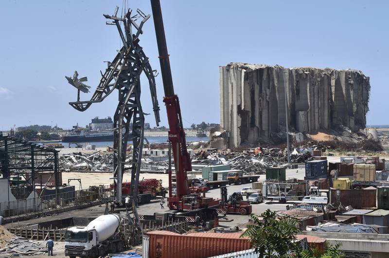 A 25-metre high sculpture, made from reclaimed construction steel that were once part of the port’s hangars, towers over the site of a devastating explosion that ripped through the Beirut port last year.